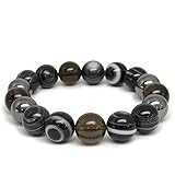 新宿銀の蔵 12mm玉 ヘマタイト 天眼石 スモーキークォーツ ブレスレット (長さ約17.5cm/メンズMサイズ) (収納ポーチセット)